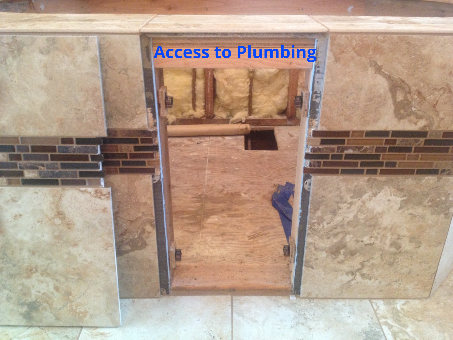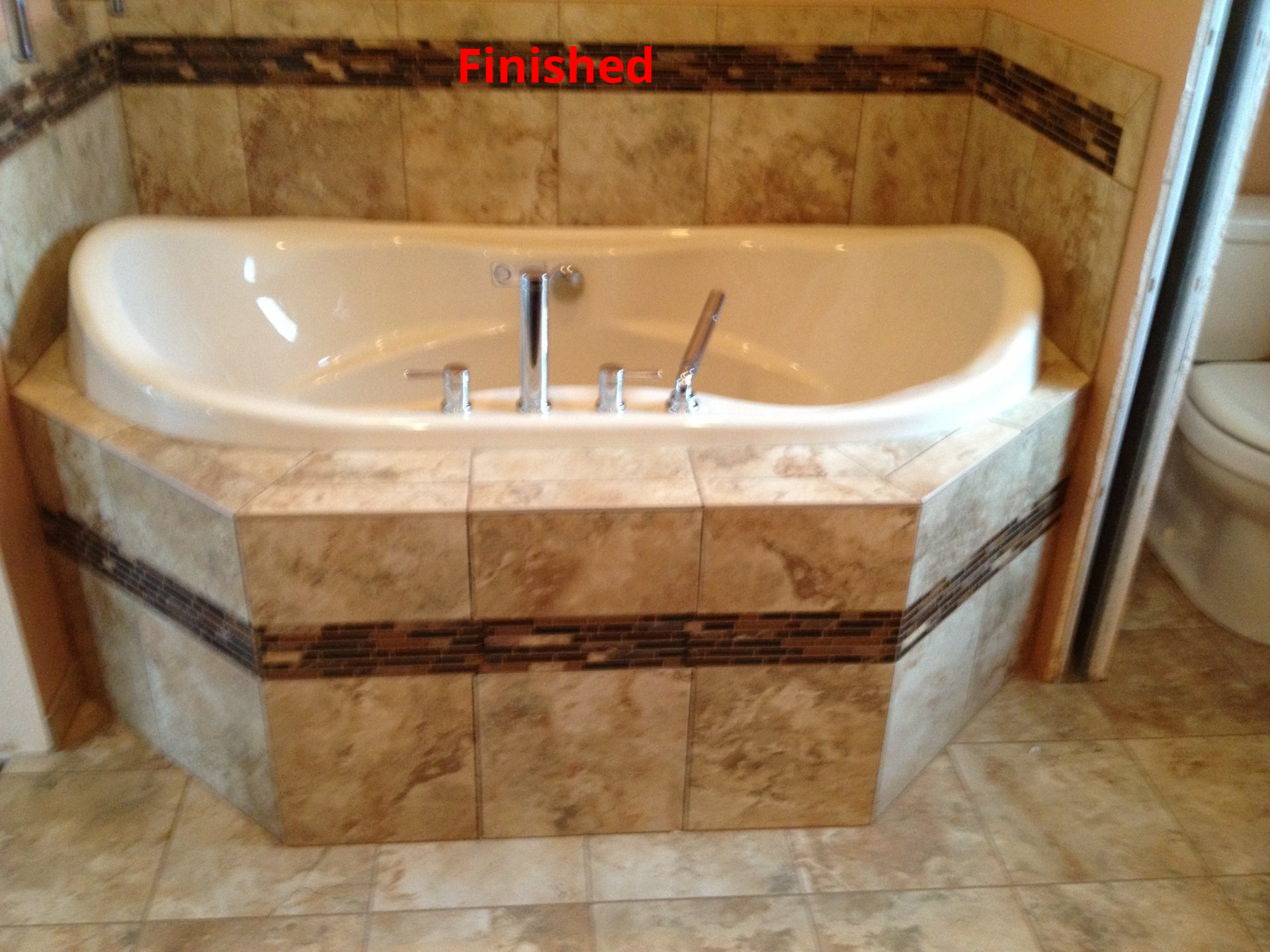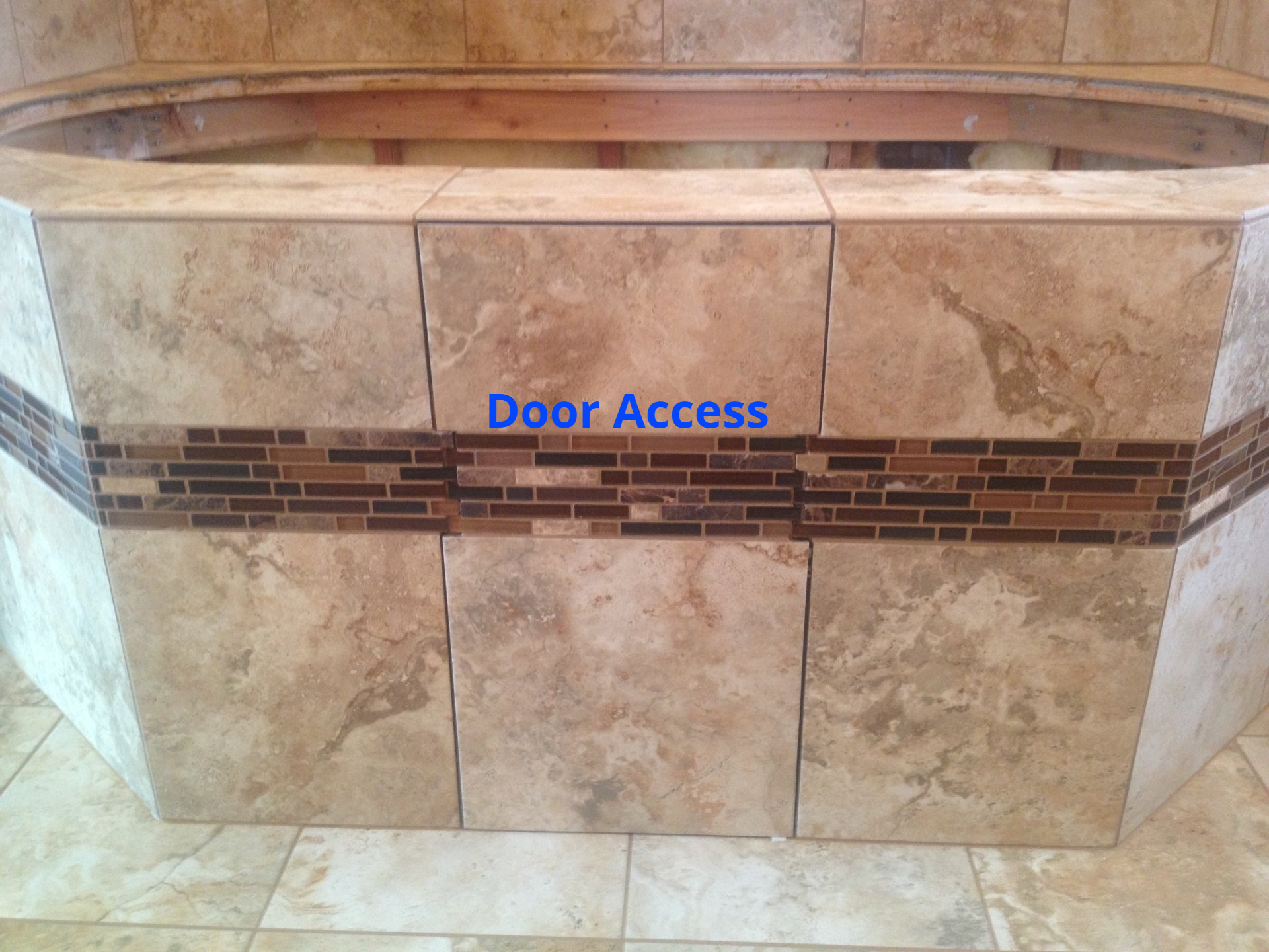 Customer designed their own corner jetted tub. A door access was added so that you could access any plumbing issues if needed.